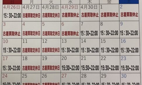 【4月29日(水)~5月6日(水)】GW期間中買取休止のお知らせ。
