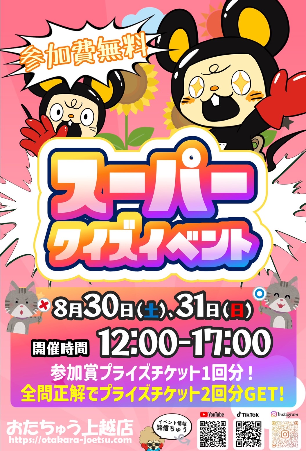 《8月30日・31日》スーパークイズイベント開催🎉 2025年8月29日 2025年9月1日 📣📣イベント情報📣📣 8月30日、31日の12:00から【スーパークイズイベント】を開催します‼️ 参加費無料! みなさまのご参加お待ちしております💕✨ ************************ こちら↓もぜひチェックしてみてくださいね♪(*´▽`*) ・最新のイベント情報はこちら ・最新の買取情報はこちら
