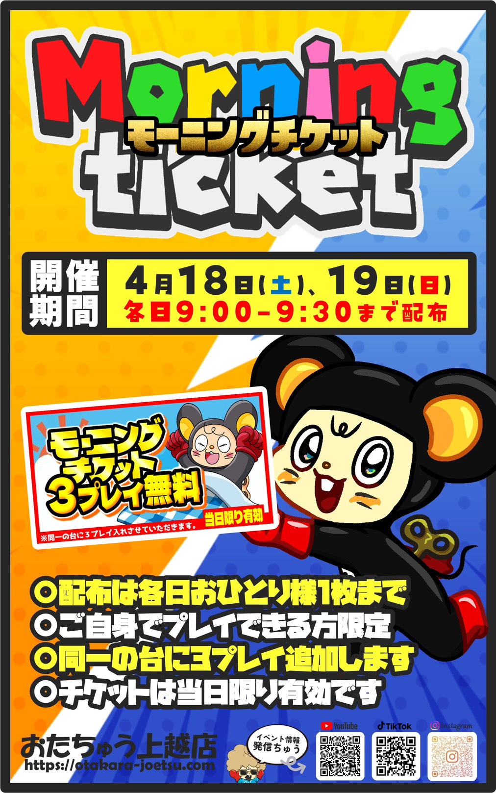 📣イベント情報📣 4月18日、19日は【モーニングチケット】イベントです‼️