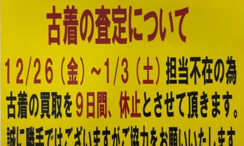 ☆★《12/26~2026/1/3》古着買取休止のお知らせ★☆■