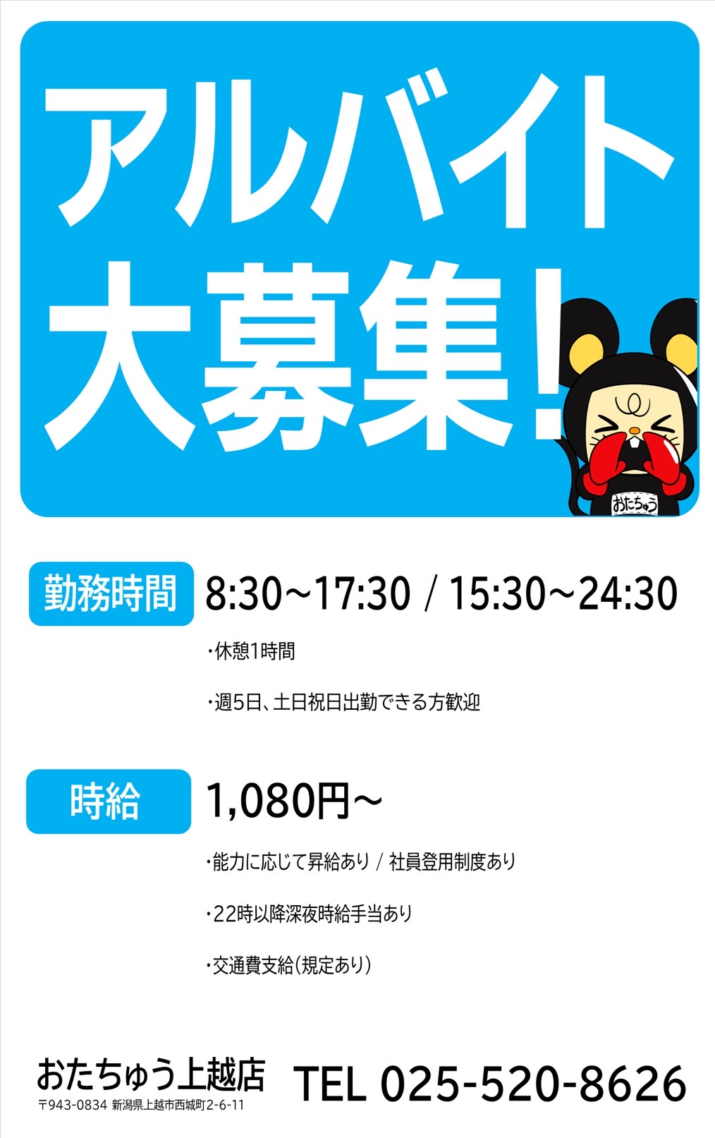 あなたの趣味をお仕事に!お宝中古市場上越店で働いてみませんか?知識や経験は一切不要。未経験でも先輩スタッフが優しく丁寧に教えます。オシャレ・服装自由、茶髪・ピアスOK!シフトも柔軟に対応。